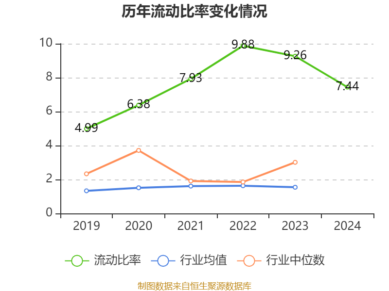 2024年,公司流动比率为7.44,速动比率为7.16。