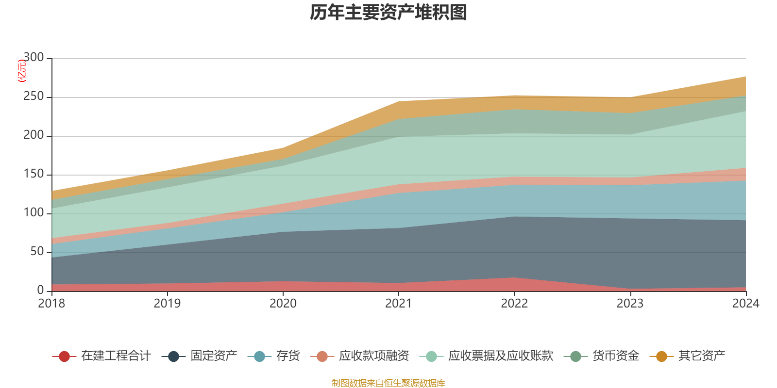 资产重大变化方面,截至2024年末,公司固定资产较上年末减少4.73%,占公司总资产比重下降5.08个百分点;应收票据及应收账款较上年末增加32.22%,占公司总资产比重上升4.29个百分点;货币资金较上年末减少27.35%,占公司总资产比重下降3.83个百分点;应收款项融资较上年末增加62.8%,占公司总资产比重上升1.89个百分点。
