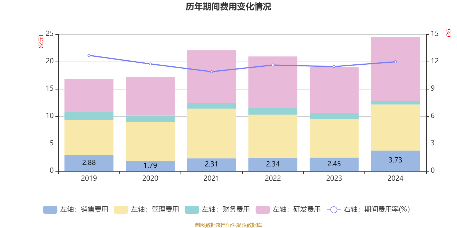 2024年全年,公司研发投入金额为11.57亿元,同比增长37.57%;研发投入占营业收入比例为5.67%,相比上年同期上升0.6个百分点。此外,公司全年研发投入资本化率为0%。