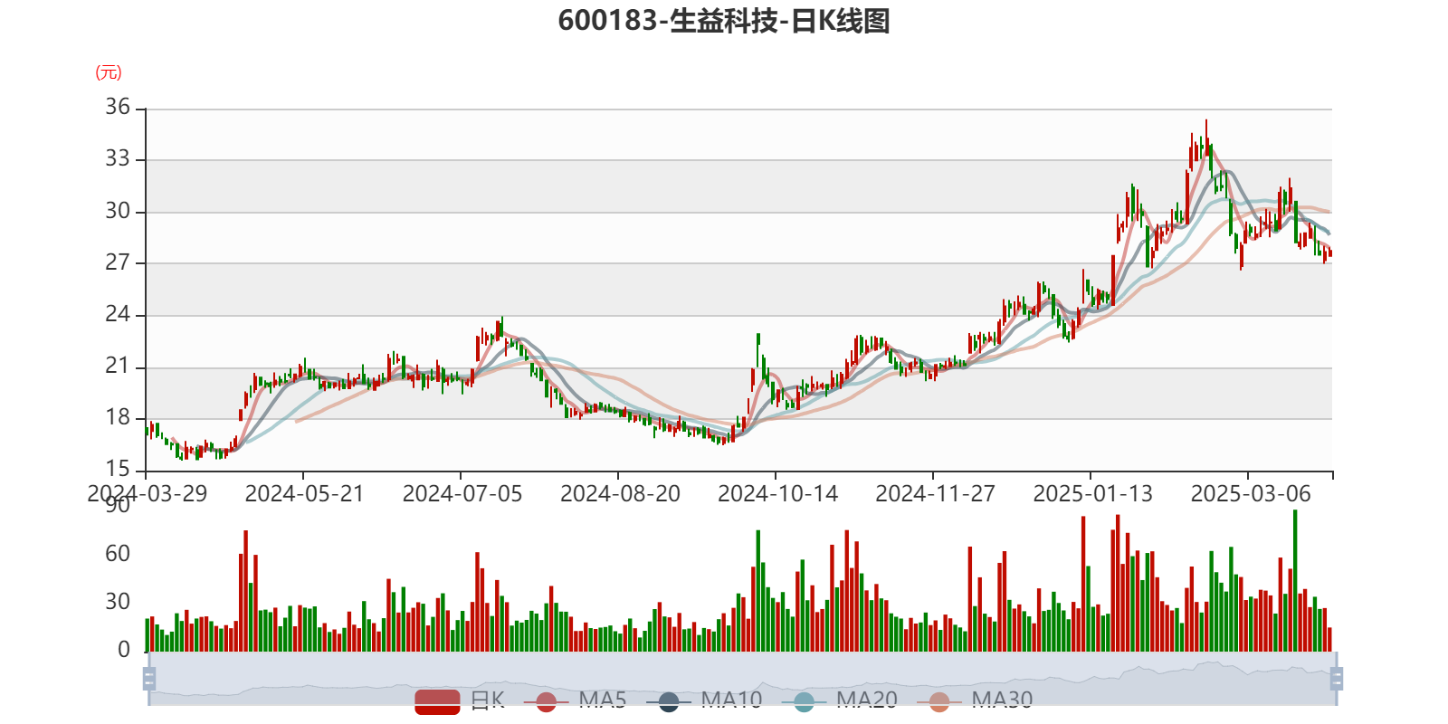 以3月28日收盘价计算,生益科技目前市盈率(TTM)约为38.77倍,市净率(LF)约4.52倍,市销率(TTM)约3.31倍。