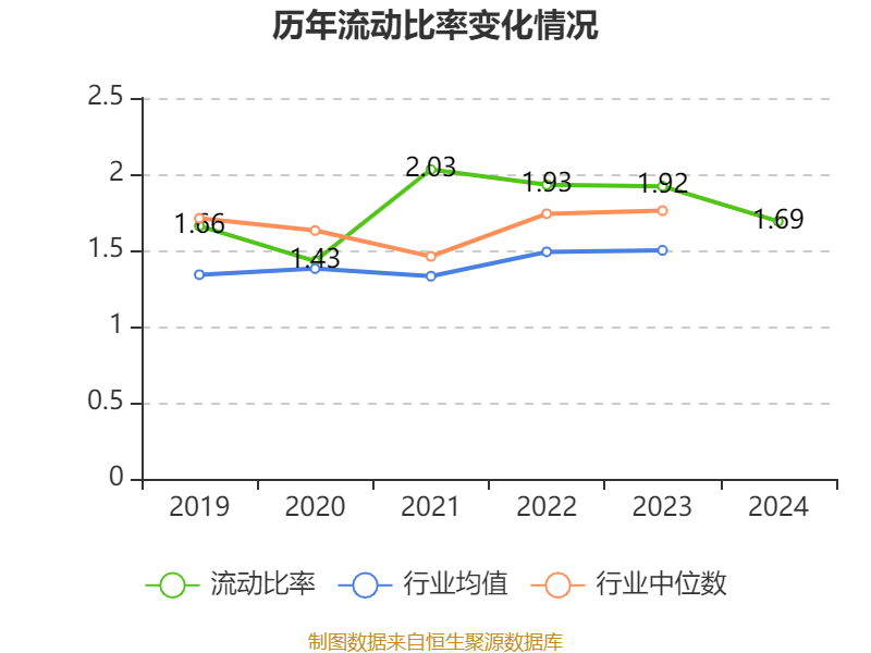 2024年,公司流动比率为1.69,速动比率为1.17。