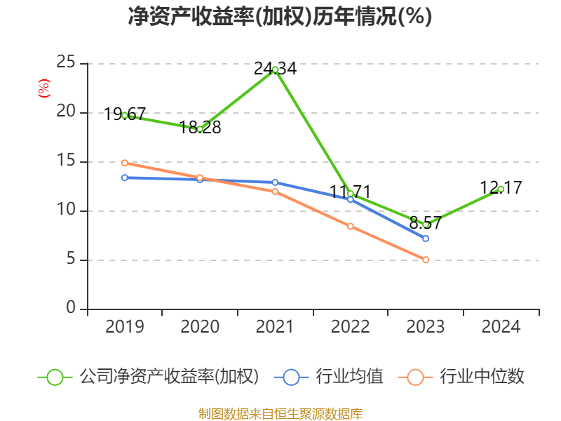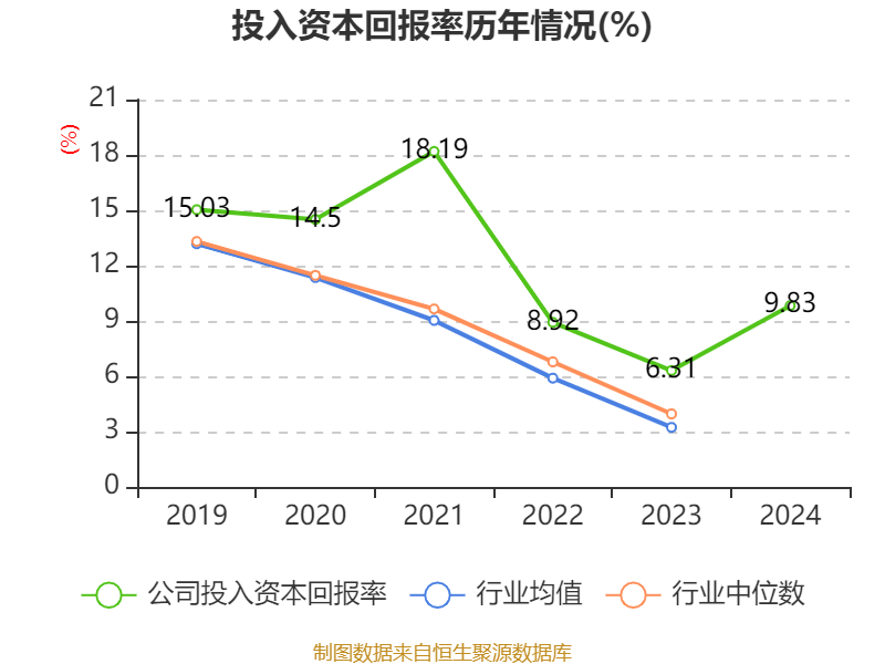 数据显示,2024年公司加权平均净资产收益率为12.17%,较上年同期上升3.6个百分点。公司2024年投入资本回报率为9.83%,较上年同期上升3.52个百分点。