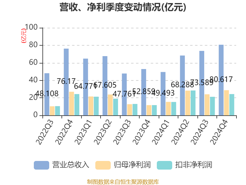 年报显示,2024年末的公司十大流通股东中,新进股东为易方达沪深300交易型开放式指数发起式证券投资基金,取代了三季度末的全国社保基金一一八组合。在具体持股比例上,香港中央结算(代理人)有限公司、香港中央结算有限公司持股有所上升,华泰柏瑞沪深300交易型开放式指数证券投资基金、国泰中证全指证券公司交易型开放式指数证券投资基金、华宝中证全指证券公司交易型开放式指数证券投资基金持股有所下降。