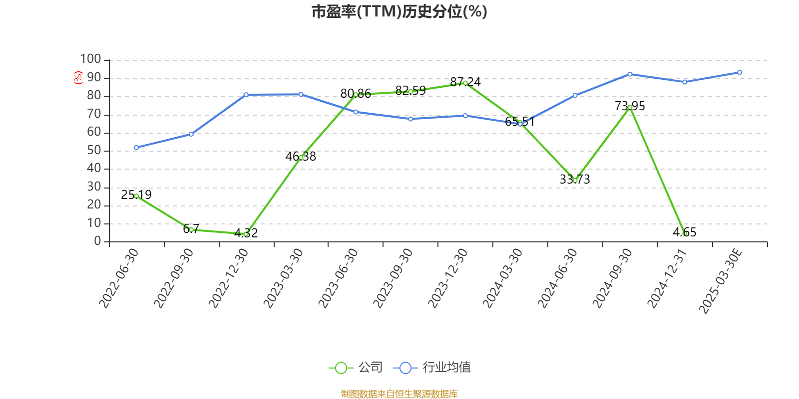 市盈率、市净率为负时,不显示当期分位数,会导致折线图中断。
