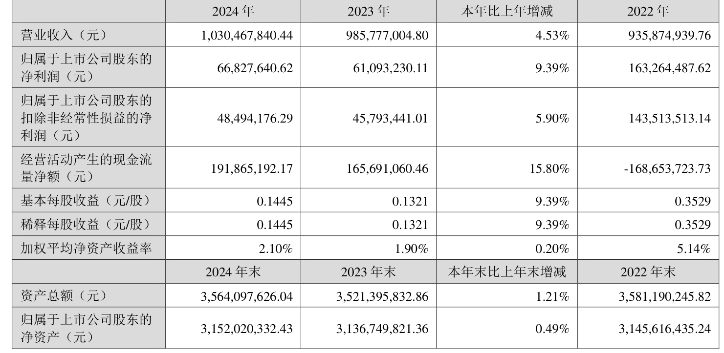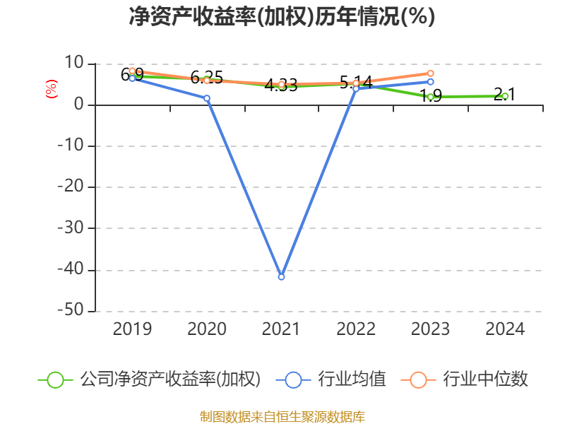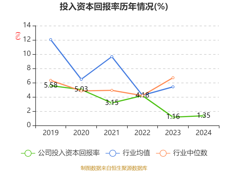 数据显示,2024年公司加权平均净资产收益率为2.1%,较上年同期上升0.2个百分点。公司2024年投入资本回报率为1.35%,较上年同期上升0.19个百分点。