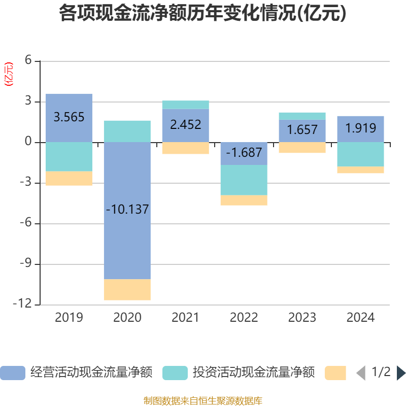 截至2024年,公司经营活动现金流净额为1.92亿元,同比增长15.8%;筹资活动现金流净额-4899.97万元,同比增加3054.7万元;投资活动现金流净额-1.81亿元,上年同期为5247.39万元。