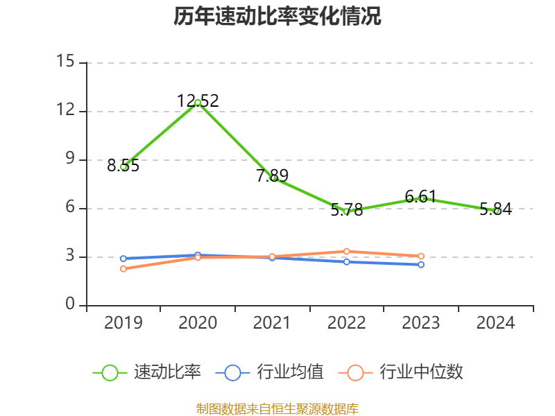 2024年,公司流动比率为6.66,速动比率为5.84。