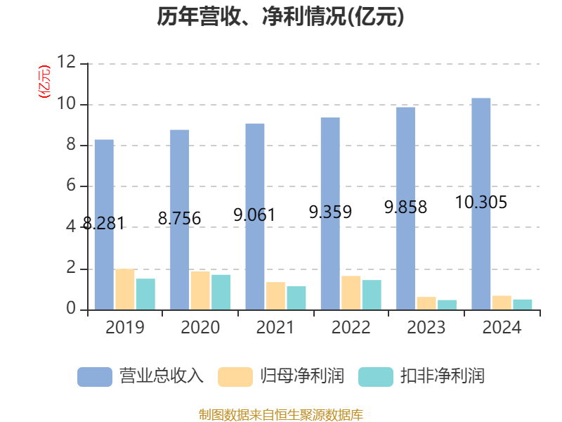 中证智能财讯东软载波(300183)3月31日披露2024年年度报告。2024年,公司实现营业总收入10.3亿元,同比增长4.53%;归母净利润6682.76万元,同比增长9.39%;扣非净利润4849.42万元,同比增长5.90%;经营活动产生的现金流量净额为1.92亿元,同比增长15.80%;报告期内,东软载波基本每股收益为0.1445元,加权平均净资产收益率为2.10%。公司2024年度分配预案为:拟向全体股东每10股派现1元(含税)。