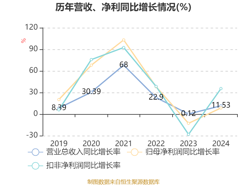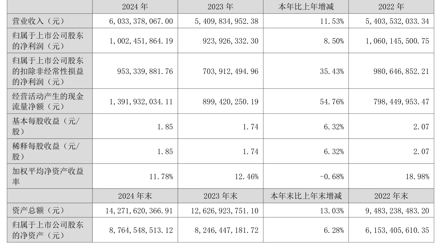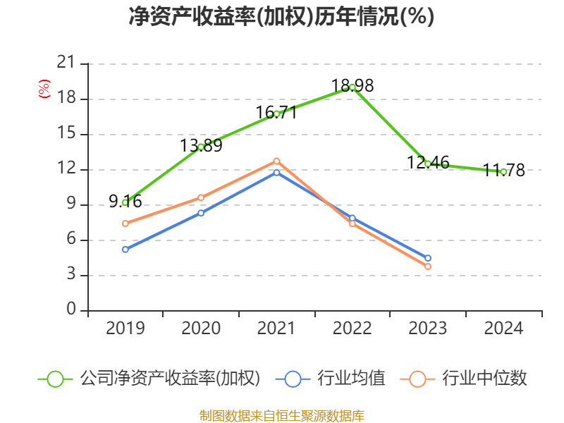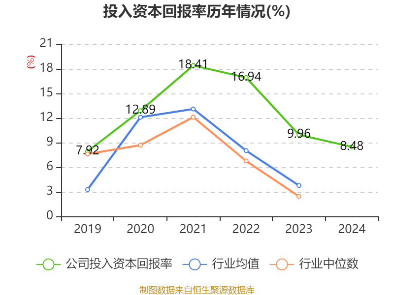 数据显示,2024年公司加权平均净资产收益率为11.78%,较上年同期下降0.68个百分点。公司2024年投入资本回报率为8.48%,较上年同期下降1.48个百分点。