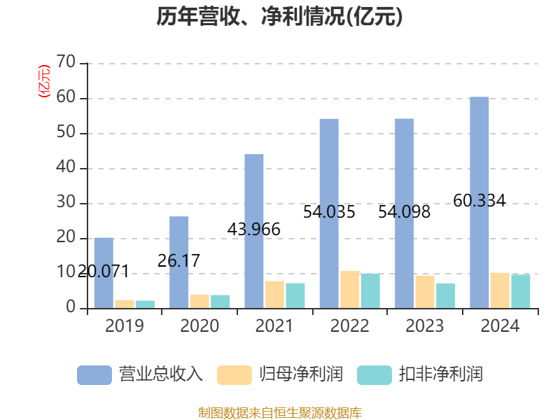 中证智能财讯扬杰科技(300373)3月31日披露2024年年度报告。2024年,公司实现营业总收入60.33亿元,同比增长11.53%;归母净利润10.02亿元,同比增长8.50%;扣非净利润9.53亿元,同比增长35.43%;经营活动产生的现金流量净额为13.92亿元,同比增长54.76%;报告期内,扬杰科技基本每股收益为1.85元,加权平均净资产收益率为11.78%。
