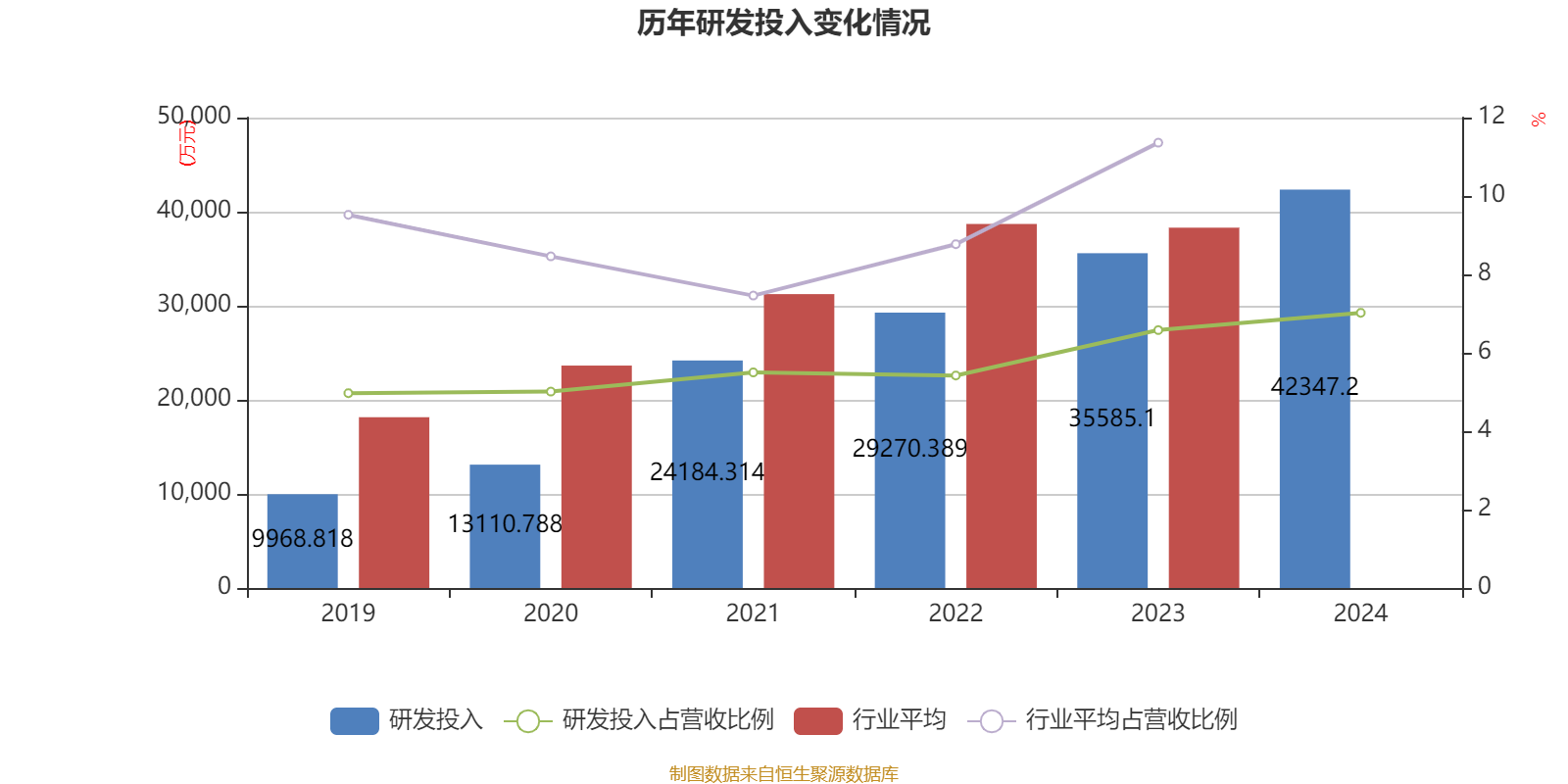 2024年全年,公司研发投入金额为4.23亿元,同比增长19%;研发投入占营业收入比例为7.02%,相比上年同期上升0.44个百分点。此外,公司全年研发投入资本化率为0%。