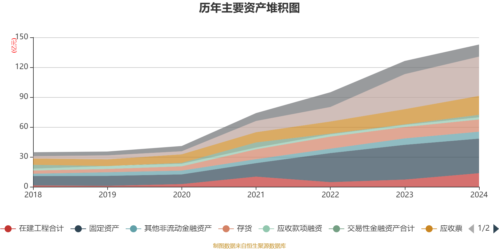资产重大变化方面,截至2024年末,公司在建工程合计较上年末增加88.73%,占公司总资产比重上升3.82个百分点;固定资产较上年末减少0.38%,占公司总资产比重下降3.27个百分点;交易性金融资产合计较上年末增加494.21%,占公司总资产比重上升1.41个百分点;其他非流动资产较上年末减少35.87%,占公司总资产比重下降1.3个百分点。