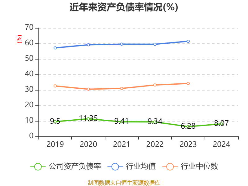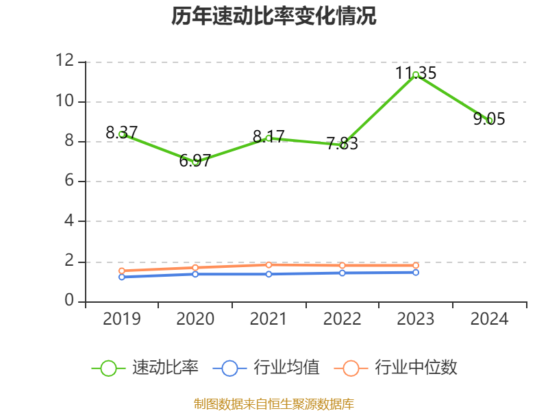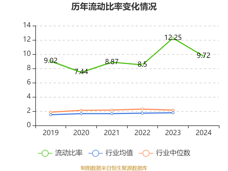 2024年,公司流动比率为9.72,速动比率为9.05。