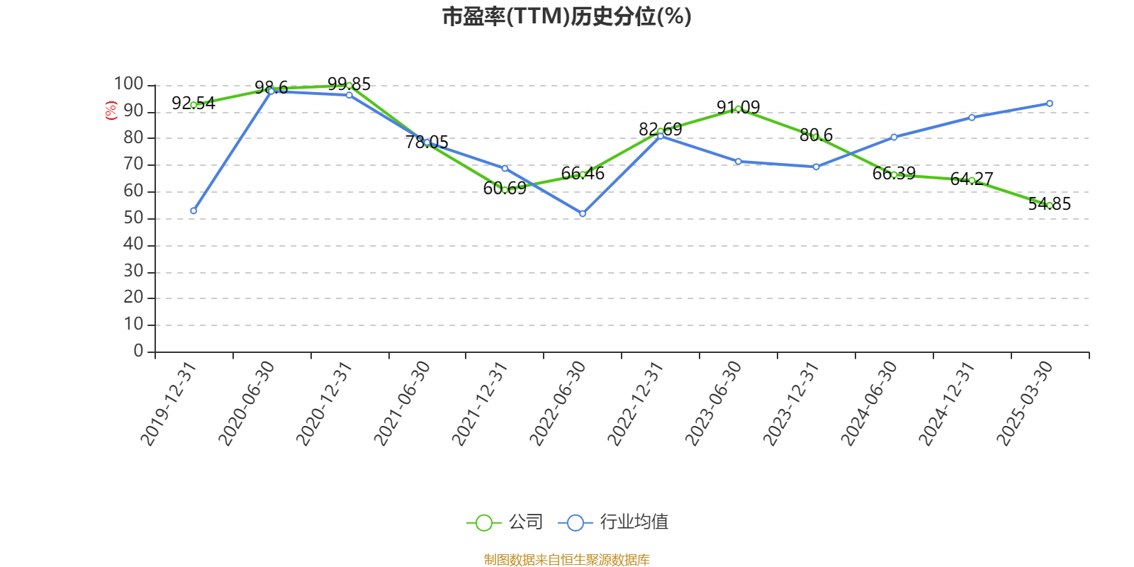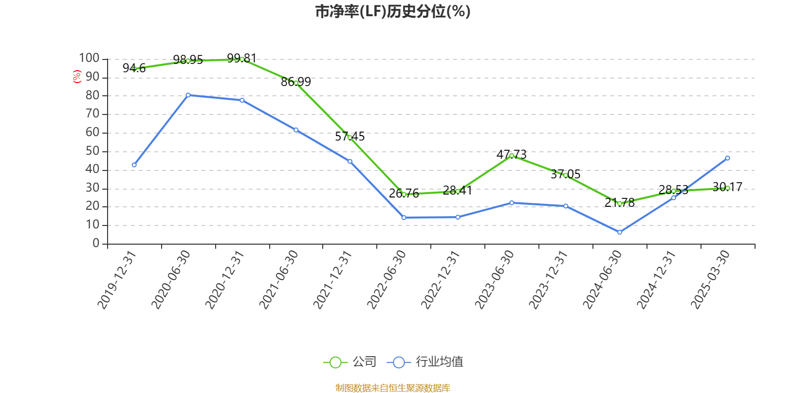 市盈率、市净率为负时,不显示当期分位数,会导致折线图中断。
