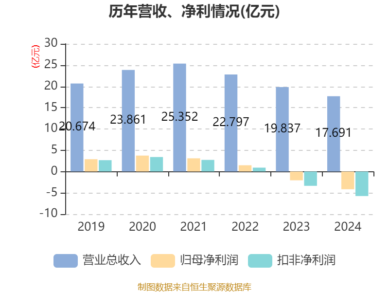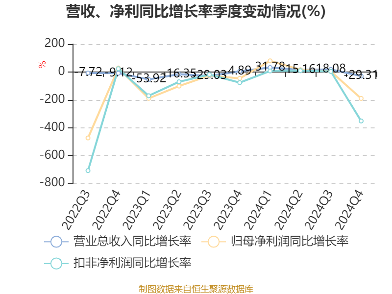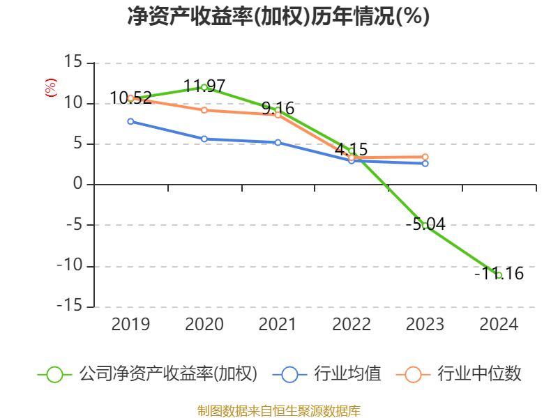 数据显示,2024年公司加权平均净资产收益率为-11.16%,较上年同期下降6.12个百分点。公司2024年投入资本回报率为-9.78%,较上年同期下降3.95个百分点。