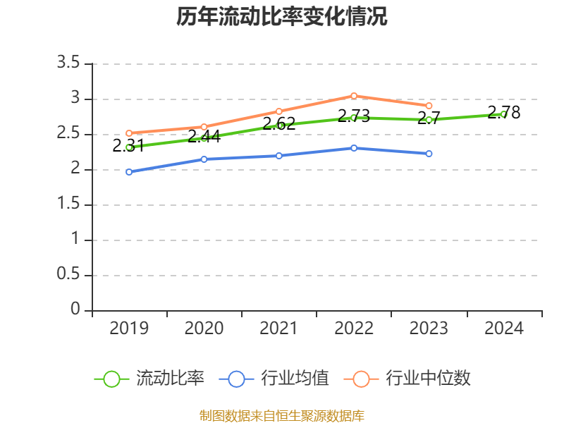 2024年,公司流动比率为2.78,速动比率为2.45。