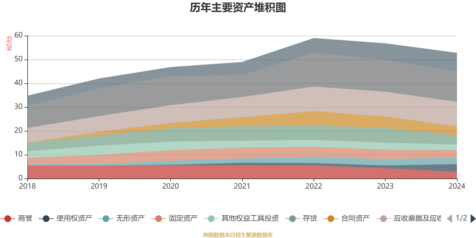 资产重大变化方面,截至2024年末,公司使用权资产较上年末增加192.61%,占公司总资产比重上升4.29个百分点;存货较上年末减少36.39%,占公司总资产比重下降3.44个百分点;商誉较上年末减少37.64%,占公司总资产比重下降2.52个百分点;长期股权投资较上年末增加256.88%,占公司总资产比重上升1.9个百分点。