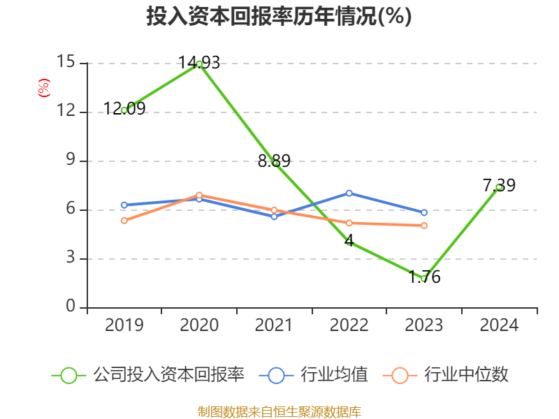 数据显示,2024年公司加权平均净资产收益率为10.87%,较上年同期上升9.4个百分点。公司2024年投入资本回报率为7.39%,较上年同期上升5.63个百分点。