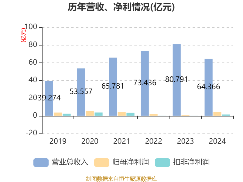 中证智能财讯西子洁能(002534)3月31日披露2024年年度报告。2024年,公司实现营业总收入64.37亿元,同比下降20.33%;归母净利润4.4亿元,同比增长705.74%;扣非净利润1.44亿元,同比扭亏;经营活动产生的现金流量净额为5.68亿元,同比增长84.59%;报告期内,西子洁能基本每股收益为0.6元,加权平均净资产收益率为10.87%。公司2024年度分配预案为:拟向全体股东每10股派现2元(含税)。