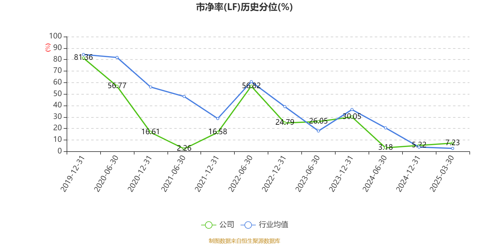 市盈率、市净率为负时,不显示当期分位数,会导致折线图中断。