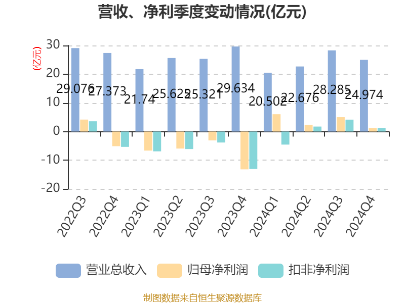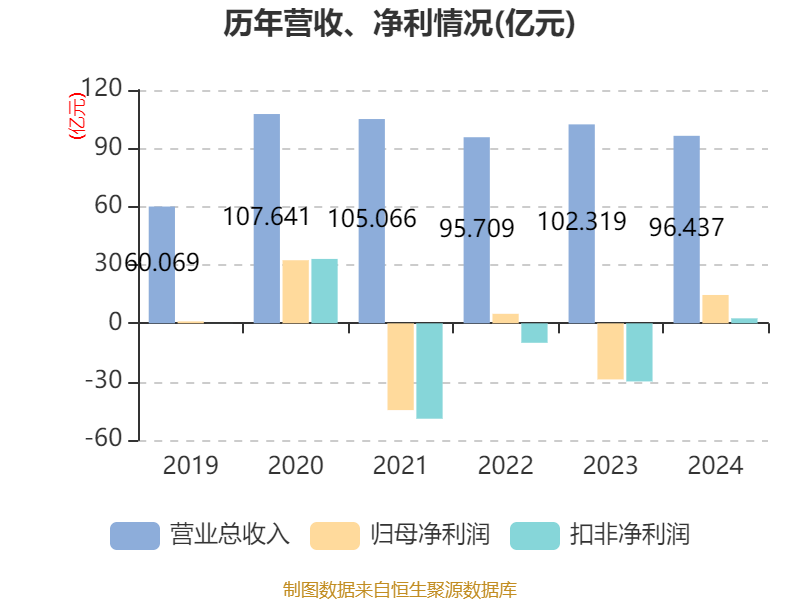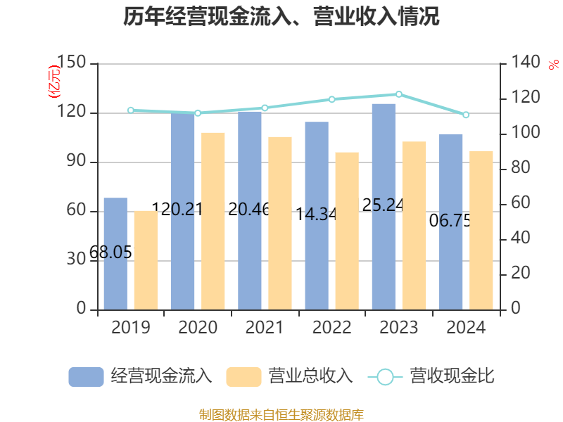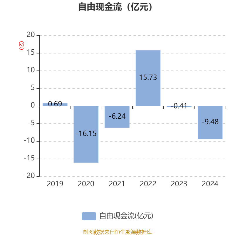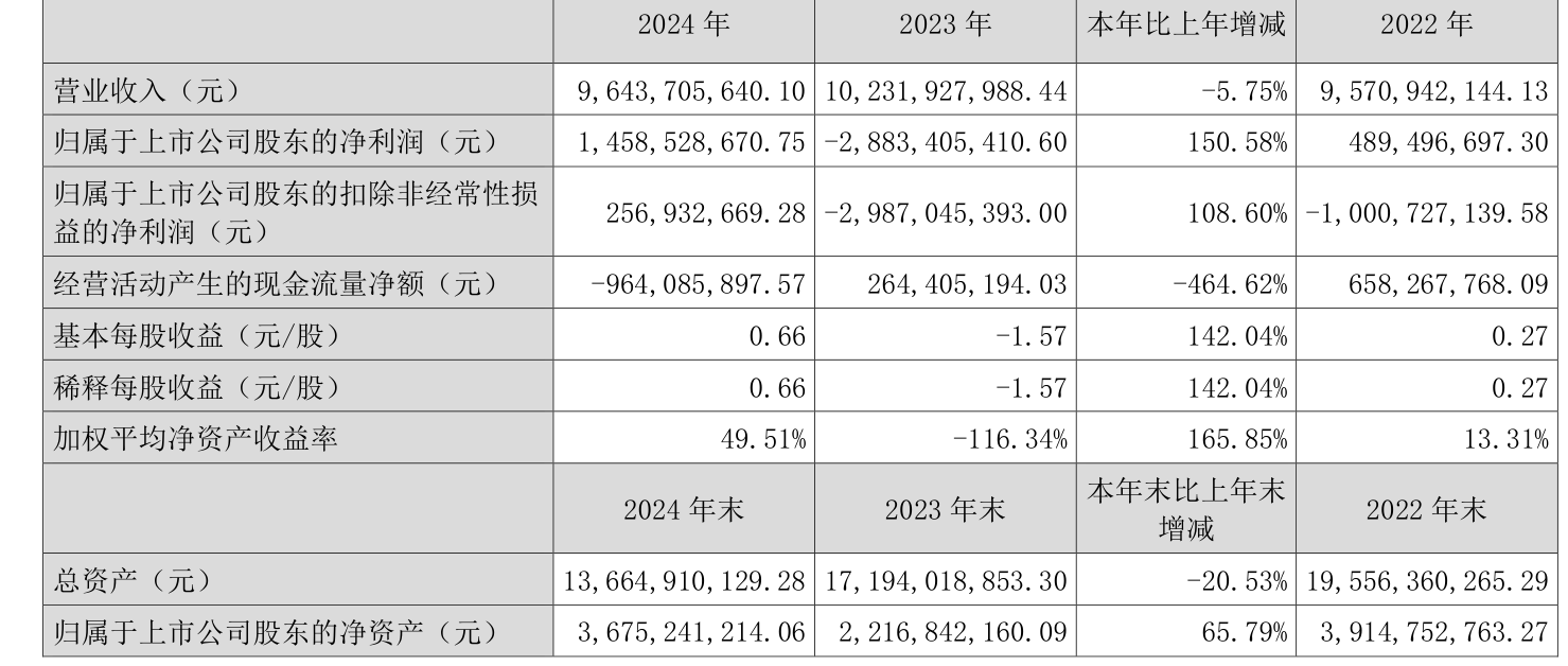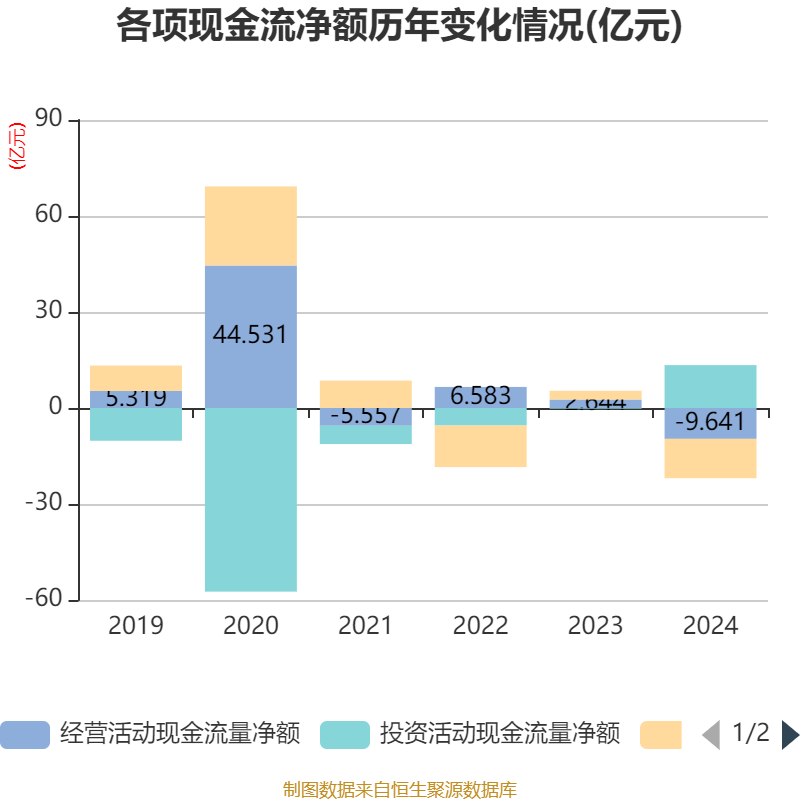 截至2024年,公司经营活动现金流净额为-9.64亿元,同比减少12.28亿元;筹资活动现金流净额-12.29亿元,同比减少15.03亿元;投资活动现金流净额13.4亿元,上年同期为-2356.65万元。