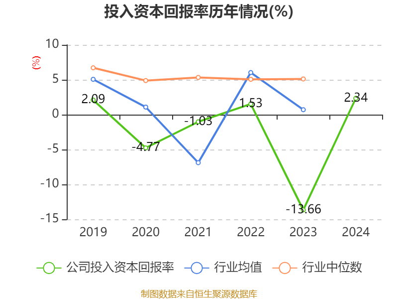 数据显示,2024年公司加权平均净资产收益率为2.46%,较上年同期上升44.33个百分点。公司2024年投入资本回报率为2.34%,较上年同期上升16个百分点。