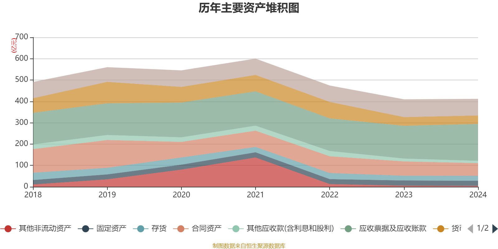 资产重大变化方面,截至2024年末,公司应收票据及应收账款较上年末增加12.63%,占公司总资产比重上升4.51个百分点;合同资产较上年末减少11.7%,占公司总资产比重下降2个百分点;交易性金融资产合计较上年末减少100%,占公司总资产比重下降1.71个百分点;其他应收款(含利息和股利)较上年末减少18.22%,占公司总资产比重下降0.62个百分点。