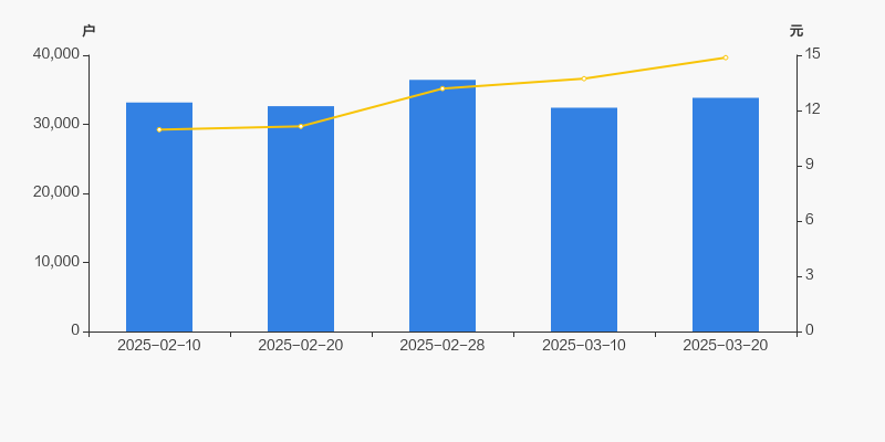 2025年2月10日至今,公司股东户数有所增长,区间涨幅为2.04%。2025年2月10日至2025年3月20日区间股价上涨35.68%。