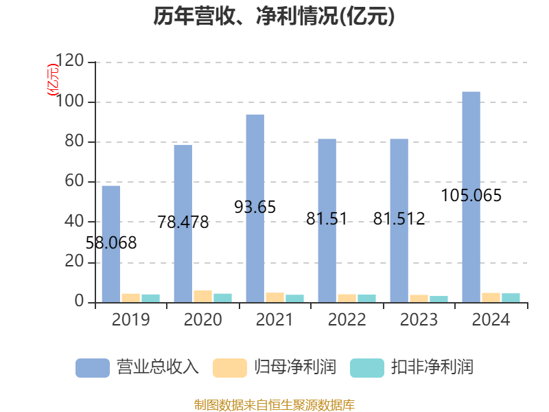 中证智能财讯宗申动力(001696)4月1日披露2024年年度报告。2024年,公司实现营业总收入105.06亿元,同比增长28.89%;归母净利润4.61亿元,同比增长27.45%;扣非净利润4.42亿元,同比增长42.92%;经营活动产生的现金流量净额为3.25亿元,同比下降46.14%;报告期内,宗申动力基本每股收益为0.4029元,加权平均净资产收益率为9.45%。公司2024年度分配预案为:拟向全体股东每10股派现2元(含税)。