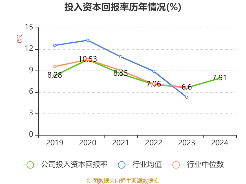 数据显示,2024年公司加权平均净资产收益率为9.45%,较上年同期上升1.85个百分点。公司2024年投入资本回报率为7.91%,较上年同期上升1.31个百分点。