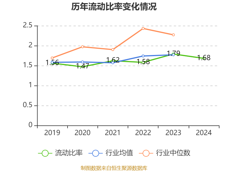 2024年,公司流动比率为1.68,速动比率为1.38。
