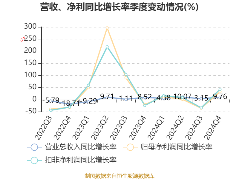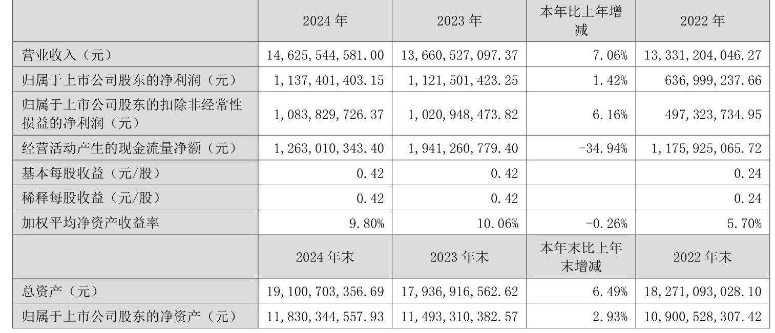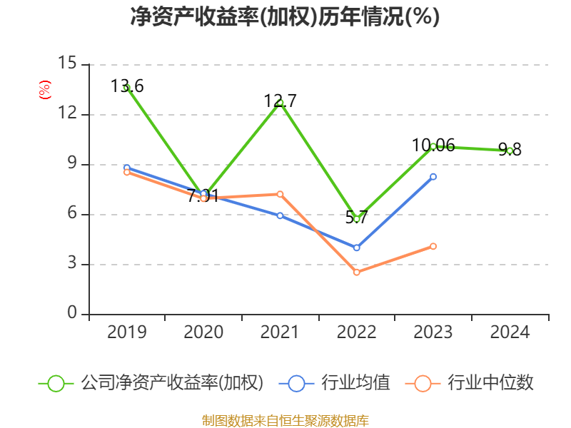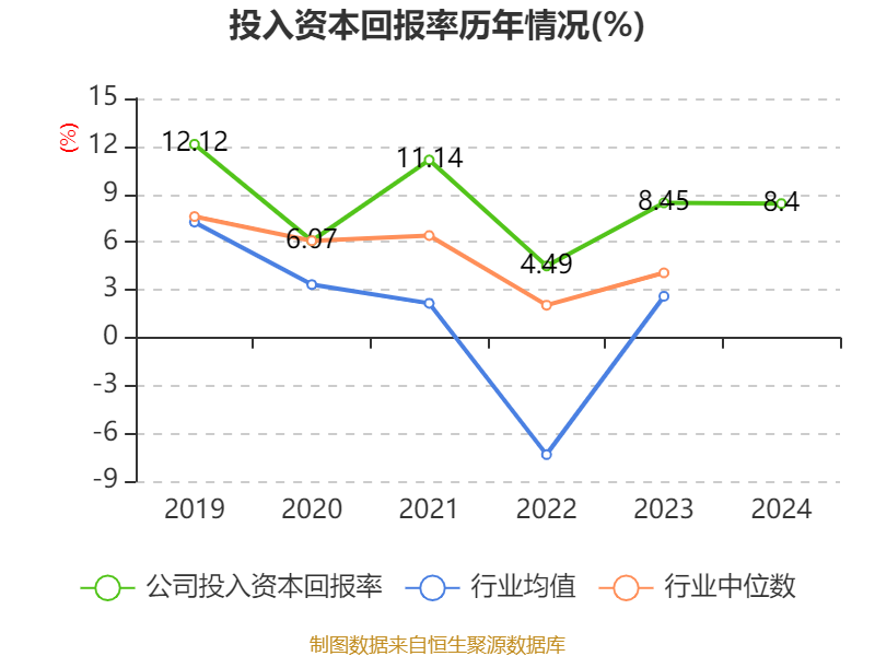 数据显示,2024年公司加权平均净资产收益率为9.8%,较上年同期下降0.26个百分点。公司2024年投入资本回报率为8.4%,较上年同期下降0.05个百分点。