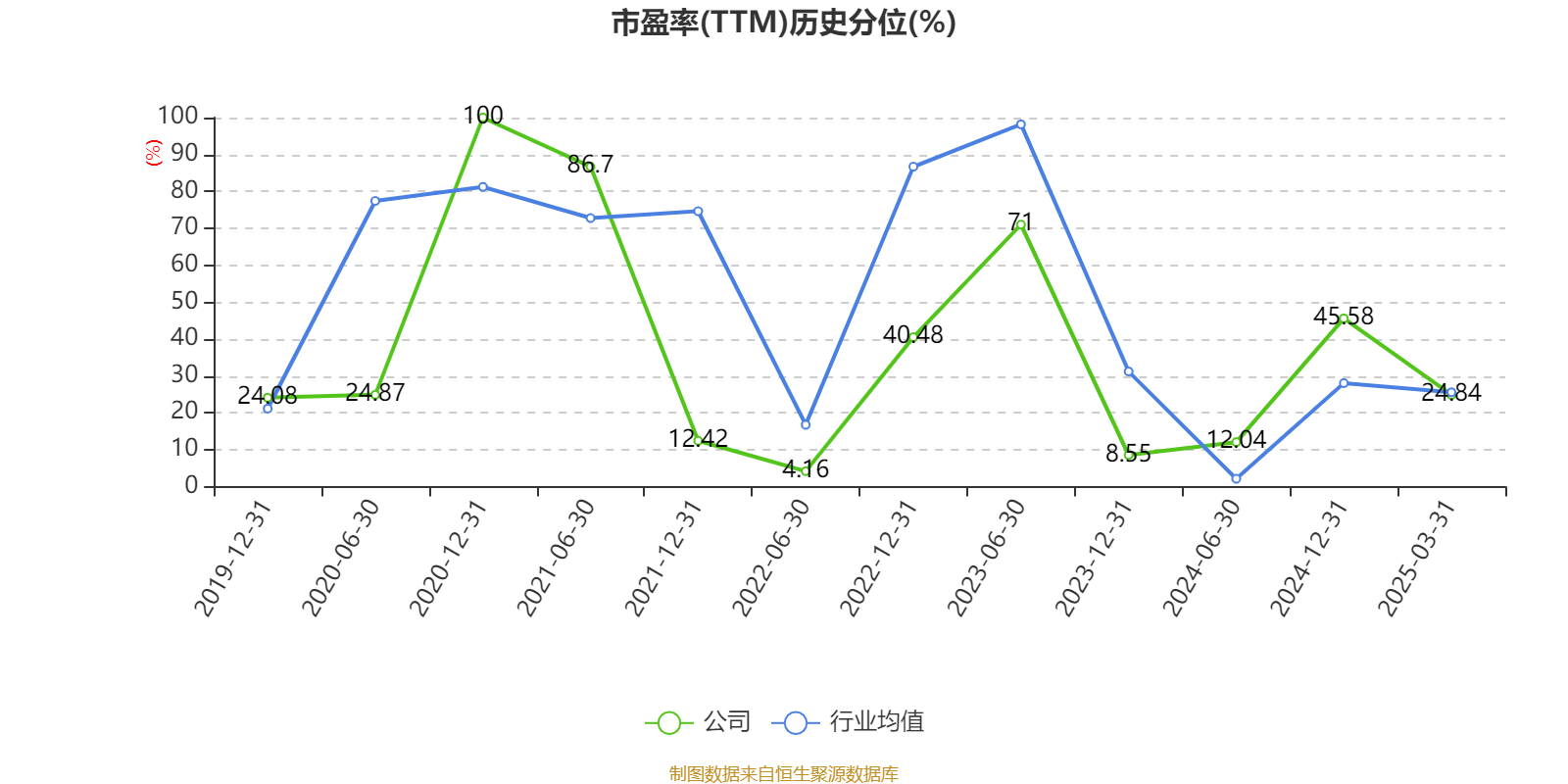 市盈率、市净率为负时,不显示当期分位数,会导致折线图中断。