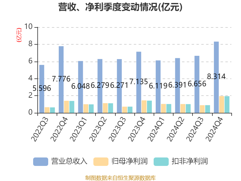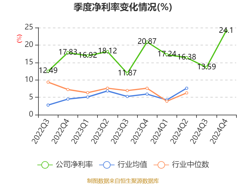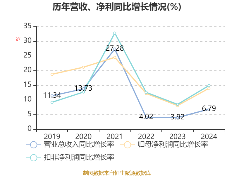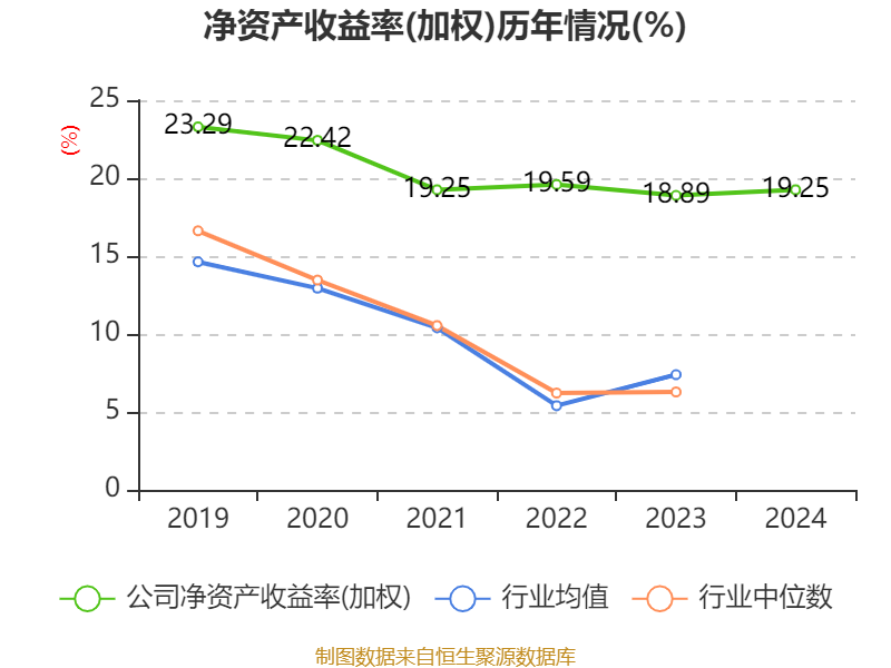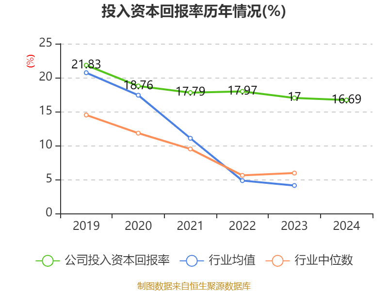 数据显示,2024年公司加权平均净资产收益率为19.25%,较上年同期上升0.36个百分点。公司2024年投入资本回报率为16.69%,较上年同期下降0.31个百分点。