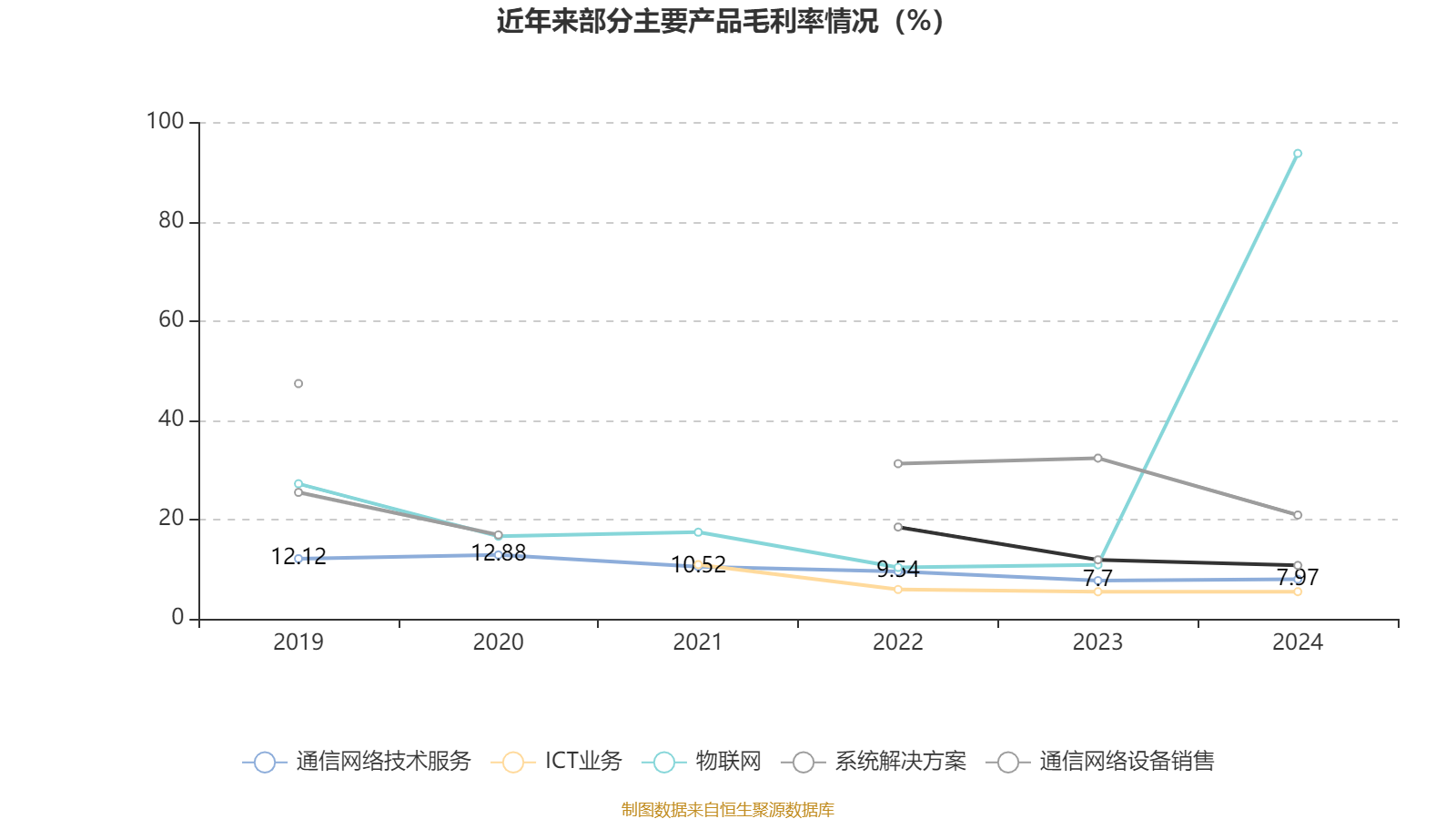 资料显示,公司主营业务覆盖通信网络技术服务、系统解决方案、通信设备生产销售业务、物联网平台及解决方案、ICT业务。