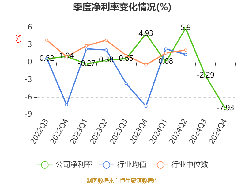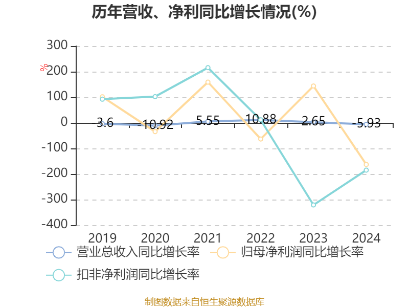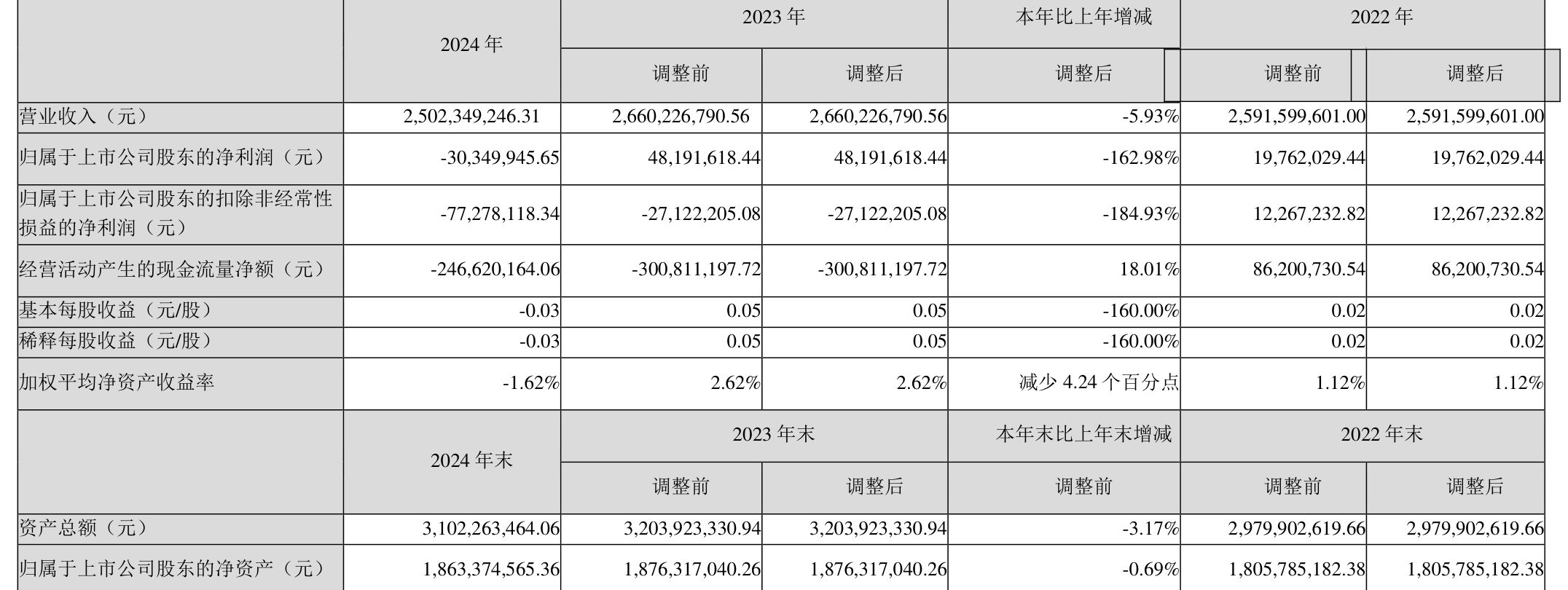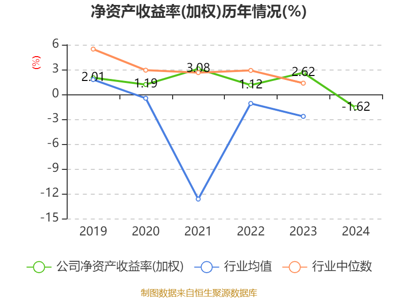 数据显示,2024年公司加权平均净资产收益率为-1.62%,较上年同期下降4.24个百分点。公司2024年投入资本回报率为-1.69%,较上年同期下降3.19个百分点。