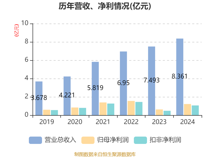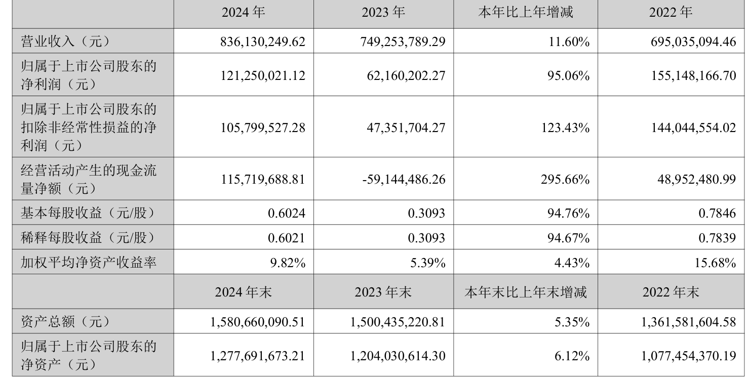 中证智能财讯普联软件(300996)4月1日披露2024年年度报告。2024年,公司实现营业总收入8.36亿元,同比增长11.60%;归母净利润1.21亿元,同比增长95.06%;扣非净利润1.06亿元,同比增长123.43%;经营活动产生的现金流量净额为1.16亿元,上年同期为-5914.45万元;报告期内,普联软件基本每股收益为0.6024元,加权平均净资产收益率为9.82%。