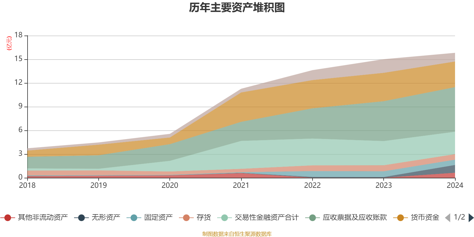 资产重大变化方面,截至2024年末,公司无形资产较上年末增加1009.05%,占公司总资产比重上升5.63个百分点;其他非流动资产占公司总资产的3.97%,上年末为0;货币资金较上年末减少9.79%,占公司总资产比重下降3.44个百分点;交易性金融资产合计较上年末减少7.57%,占公司总资产比重下降2.51个百分点。