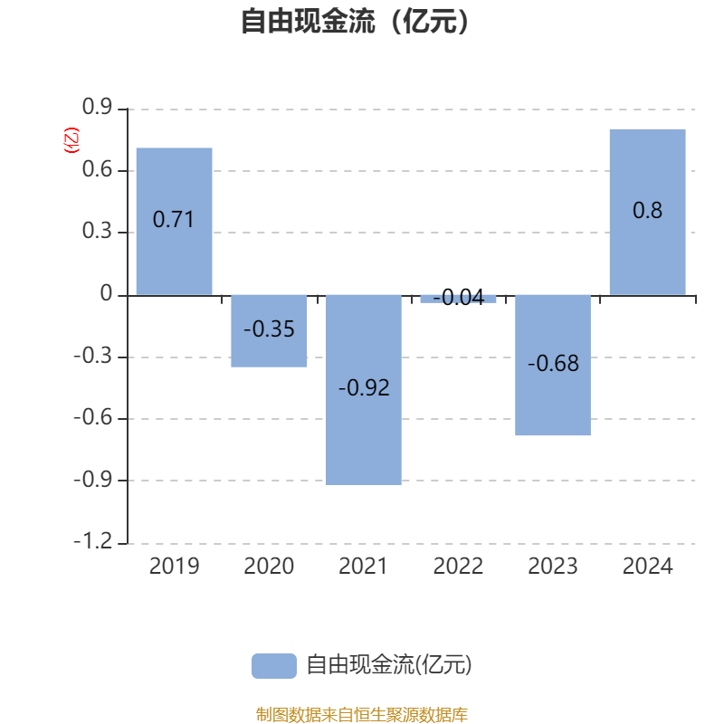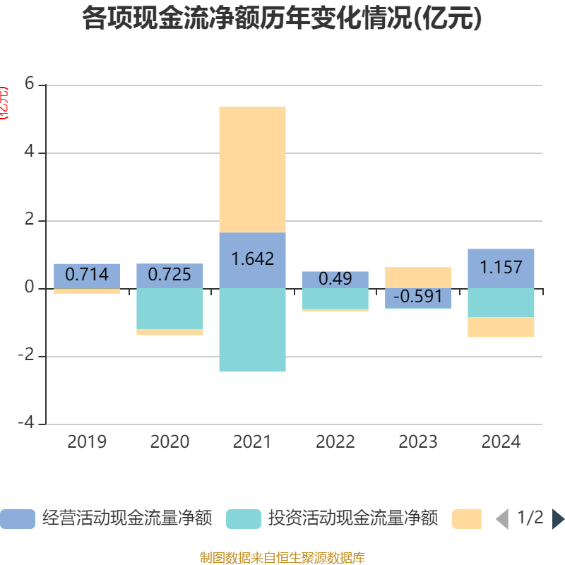 截至2024年,公司经营活动现金流净额为1.16亿元,同比增加1.75亿元;筹资活动现金流净额-5780.98万元,同比减少1.2亿元;投资活动现金流净额-8610.35万元,上年同期为-241.19万元。