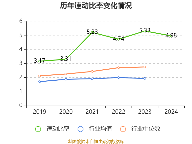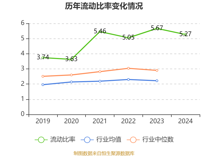 2024年,公司流动比率为5.27,速动比率为4.98。