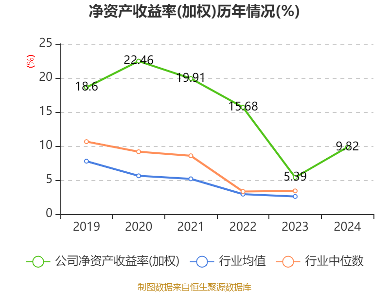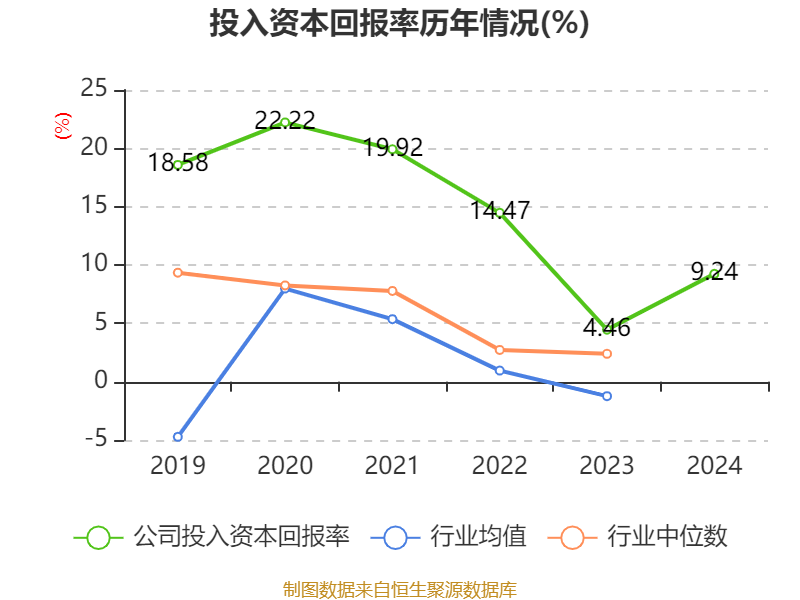 数据显示,2024年公司加权平均净资产收益率为9.82%,较上年同期上升4.43个百分点。公司2024年投入资本回报率为9.24%,较上年同期上升4.78个百分点。