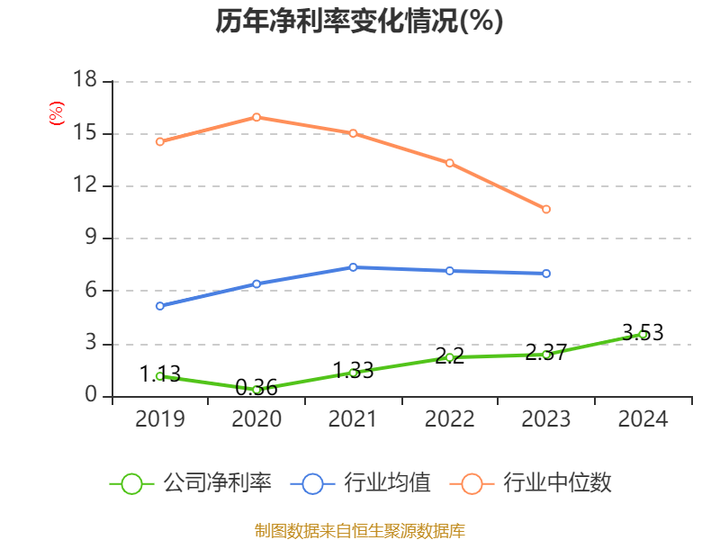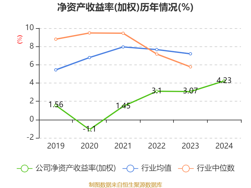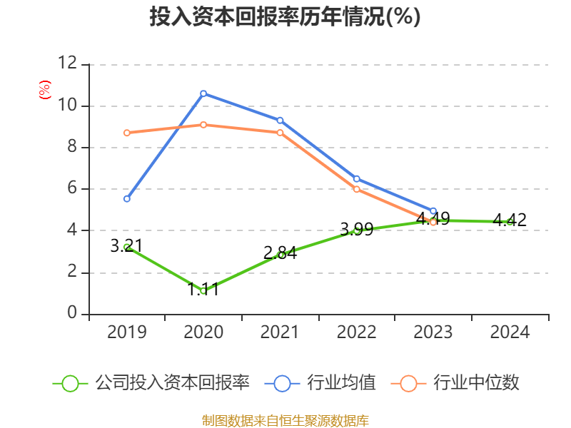 数据显示,2024年公司加权平均净资产收益率为4.23%,较上年同期上升1.16个百分点。公司2024年投入资本回报率为4.42%,较上年同期下降0.07个百分点。