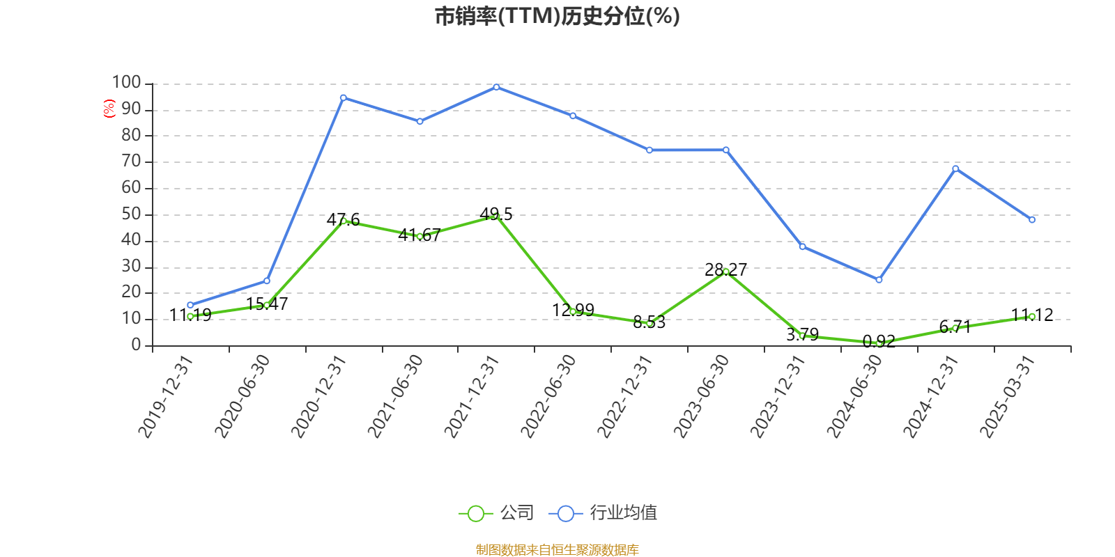 市盈率、市净率为负时,不显示当期分位数,会导致折线图中断。