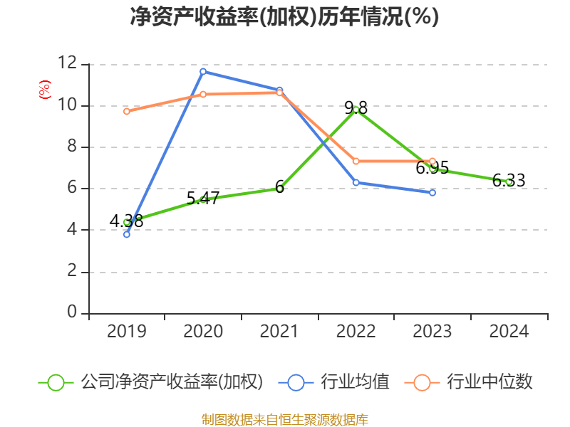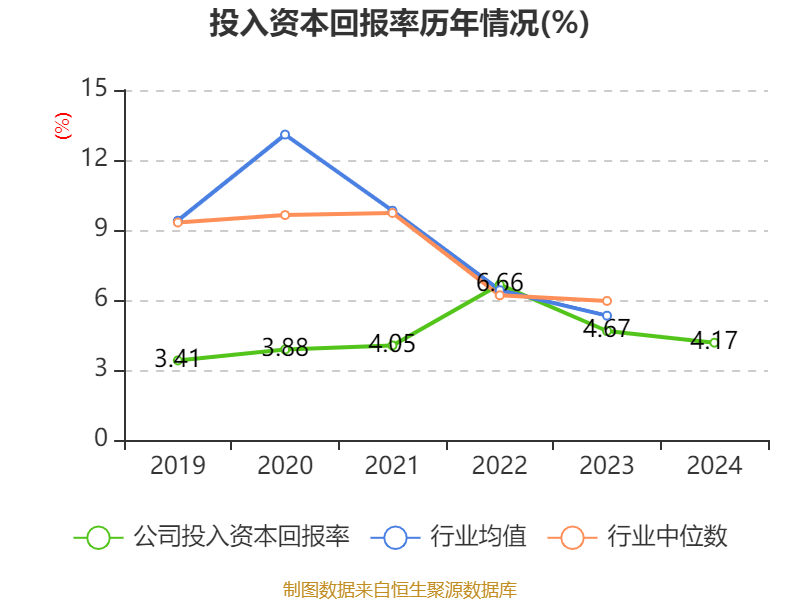数据显示,2024年公司加权平均净资产收益率为6.33%,较上年同期下降0.62个百分点。公司2024年投入资本回报率为4.17%,较上年同期下降0.5个百分点。