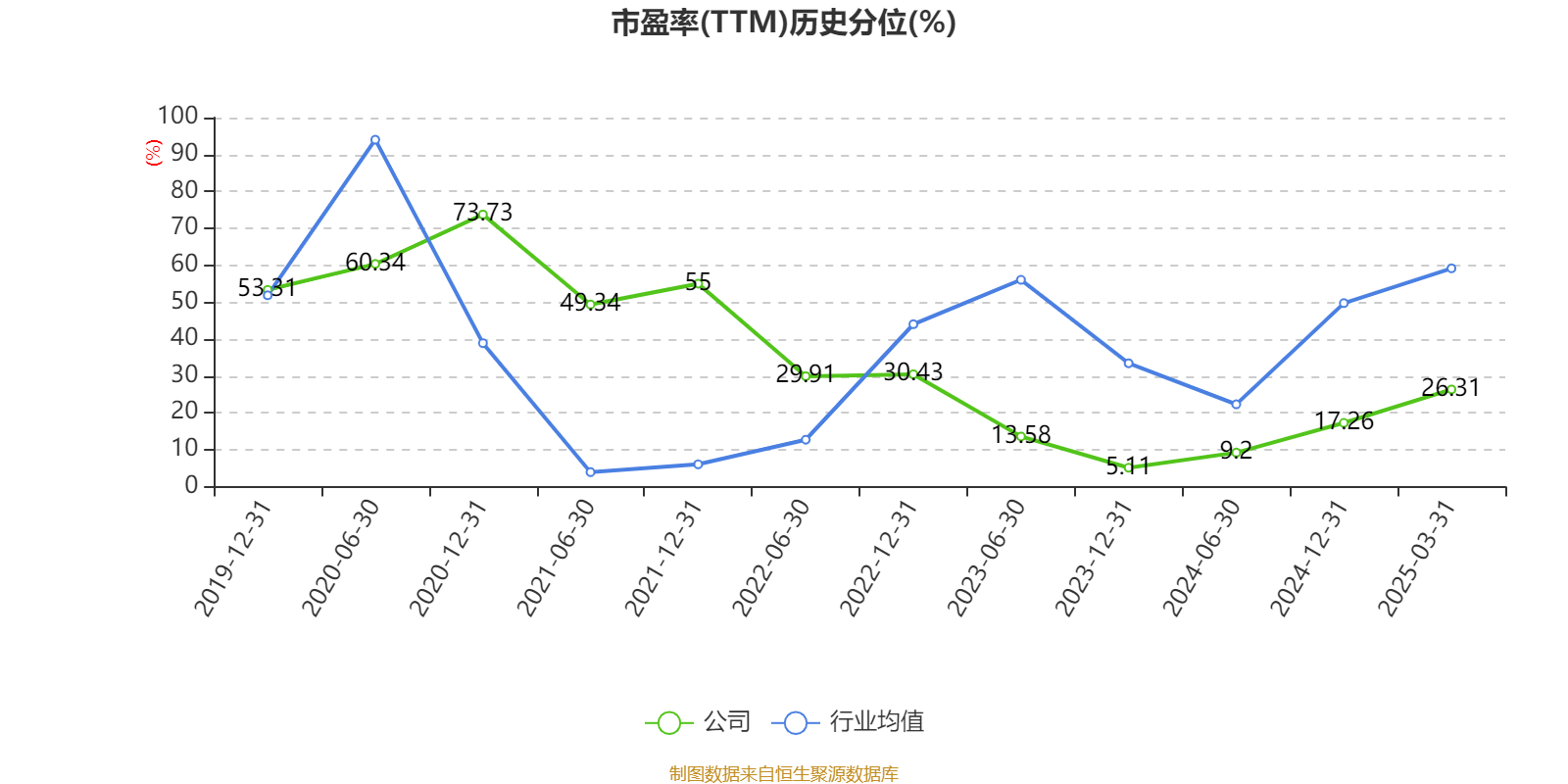 市盈率、市净率为负时,不显示当期分位数,会导致折线图中断。