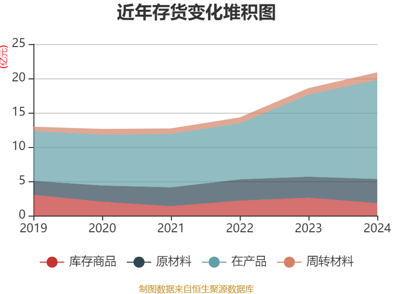 从存货变动来看,截至2024年末,公司存货账面价值为20.88亿元,占净资产的45.13%,较上年末增加2.31亿元。其中,存货跌价准备为110.96万元,计提比例为0.05%。