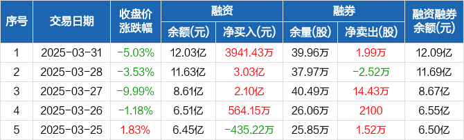 宝丰能源融资融券信息显示,2025年3月31日融资净买入3941.43万元;融资余额12.03亿元,创近一年新高,较前一日增加3.39%。