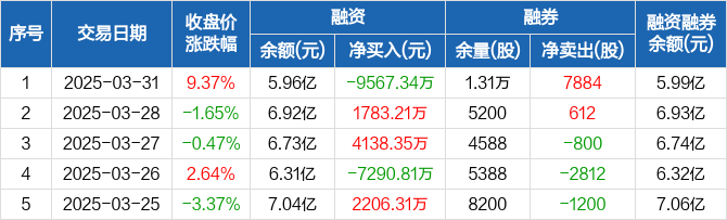 乐鑫科技融资融券信息显示,2025年3月31日融资净偿还9567.34万元;融资余额5.96亿元,较前一日下降13.83%。