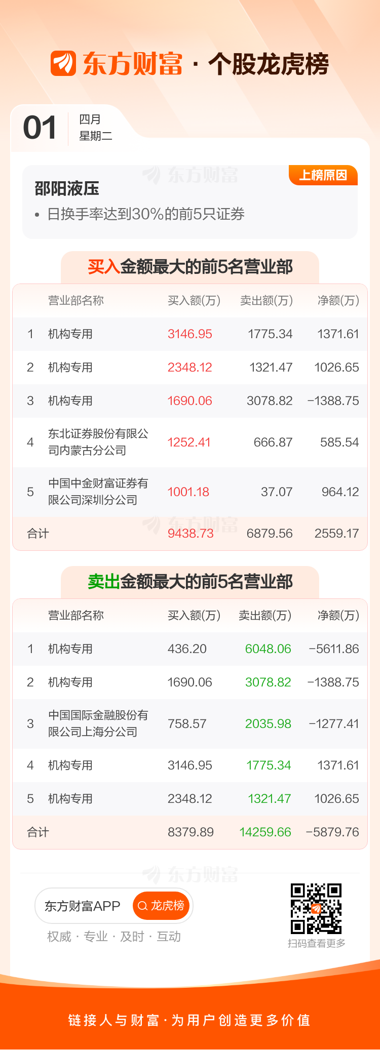 交易所2025年4月1日公布的交易公开信息显示,邵阳液压因成为日换手率达到30%的前5只证券上榜。邵阳液压当日收报29.2元,涨跌幅3.36%,偏离值42.12%,换手率42.52%,成交额8.52亿。