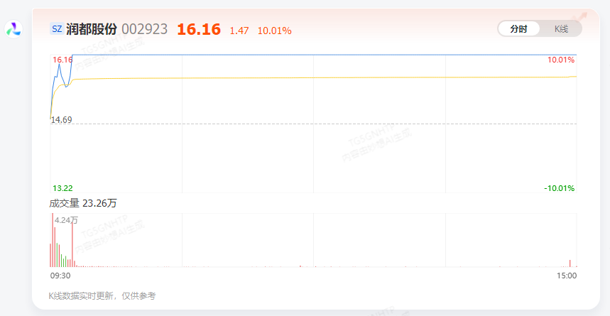 市场情绪:市场整体情绪回暖,医药板块领涨,润都股份作为板块内的强势股,受到资金追捧。